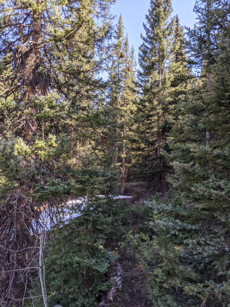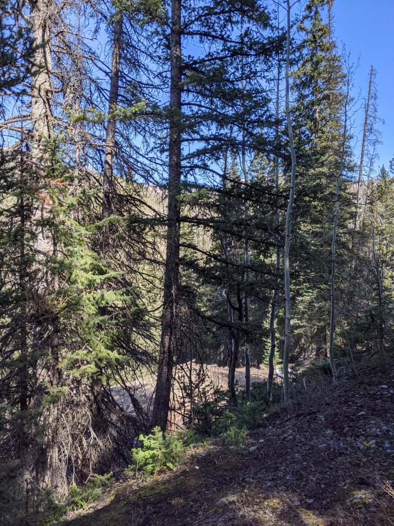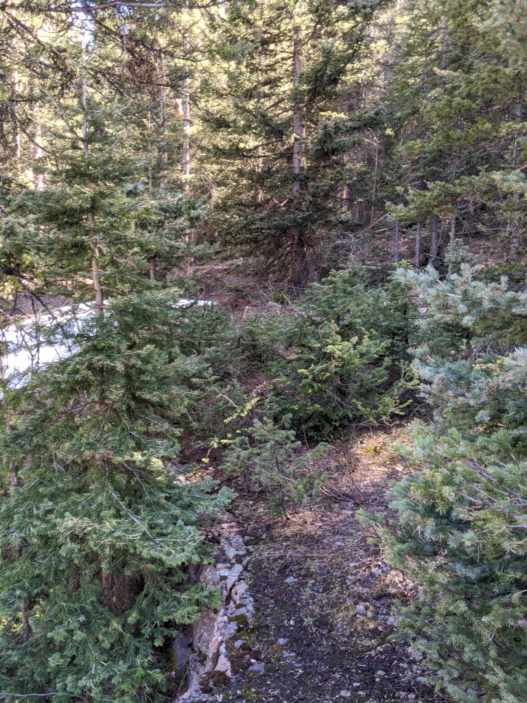 of Mazeppa, and north of the Prince Edward (the property we are keeping to build our future cabin on). This piece has a huge, relatively flat building area, small creek, and stunning waterfall views. The prior owner had a unique idea of perching his cabin over the mine with parking on the road. The King Mine has had some vandalism and blocked off, but access might be re-established.